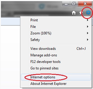 Click on the Tools icon at the top right corner and then click on Internet Options