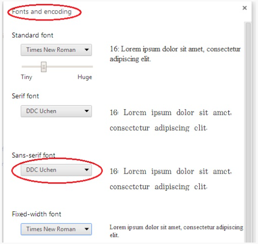 In the fonts and Encoding tab, choose DDC Uchen for Sans-serif font and choose Unicode(UTF-8) for encoding. Then click done and close the setting‘s tab.