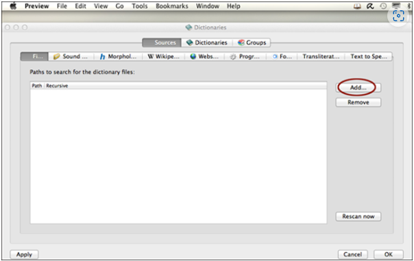 12. Tick all the checkbox next to the dictionaries and click on “Rescan now”.