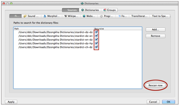 11. Repeat step 9 until you have finished adding the rest of the Dzongkha dictionaries.