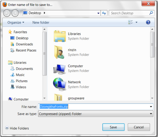 • Download the file DzongkhaFonts.zip and save to your Desktop.